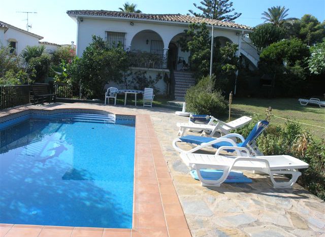 Villa originally built more than 30 years ago and on need to be refurbished in Nueva Andalucia very near to Puerto Banus, and la Campana.The house is reachable from the street through a small entrance gate and lead though a staircase to the lower floor of the garden and swimming pool, and to a separate apartment with 2 bedrooms and 1 bathroom and a private terrace with beams and heavy.The main house in the ground floor level offers sea views, a covered terrace with arches and consits of 3 bedrooms and 2 bathromms,a fitted kitchen, dining and lounge area.The solarium is reachable from the ground floor level from outside and offers sea views.
